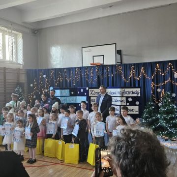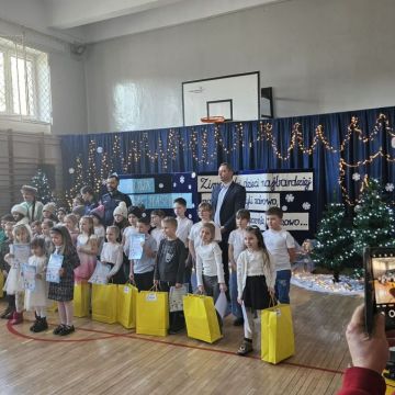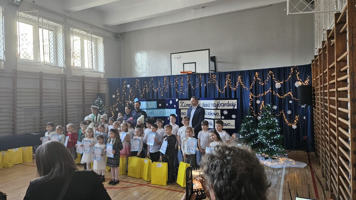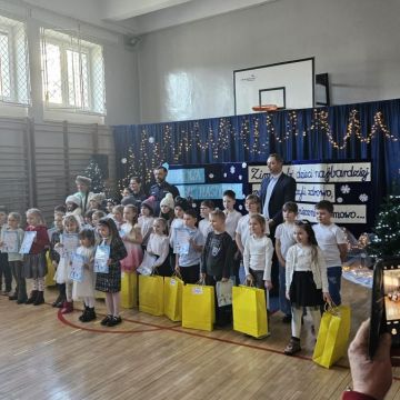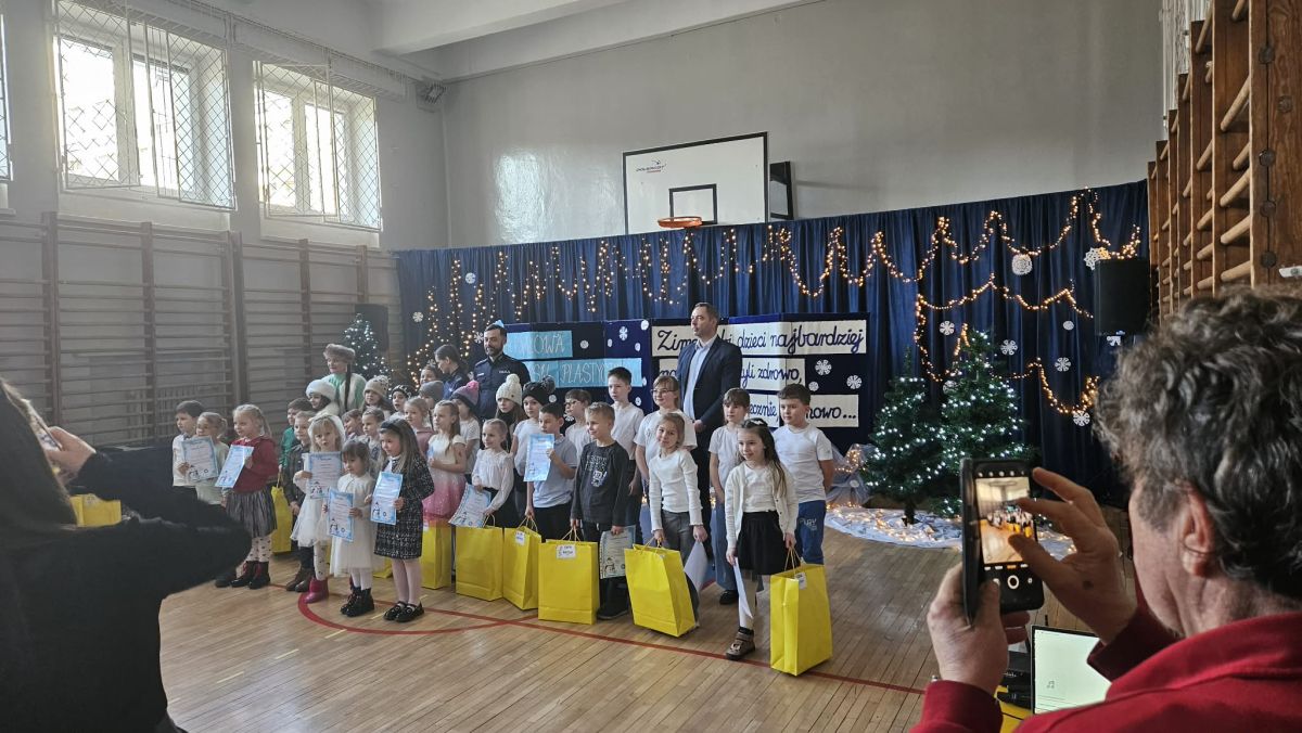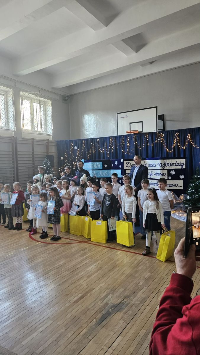 Uroczyste wręczenie nagród w konkursie plastycznym "Zima lubi dzieci najbardziej na świecie.. " zorganizowanym przez SP 12 w Kielcach - dzieci 6-letnie